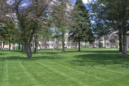 (5) Landscaping. Landscaping may be required to screen as much of the wind energy facility ground features as possible, the fence surrounding the support structure, any other ground-level features (such as a building), and, in general, buffer the wind energy facility's ground features from neighboring properties. The Borough may permit any combination of existing vegetation, topography, walls, decorative fences or other features instead of landscaping if they achieve the same degree of screening as the required landscaping.